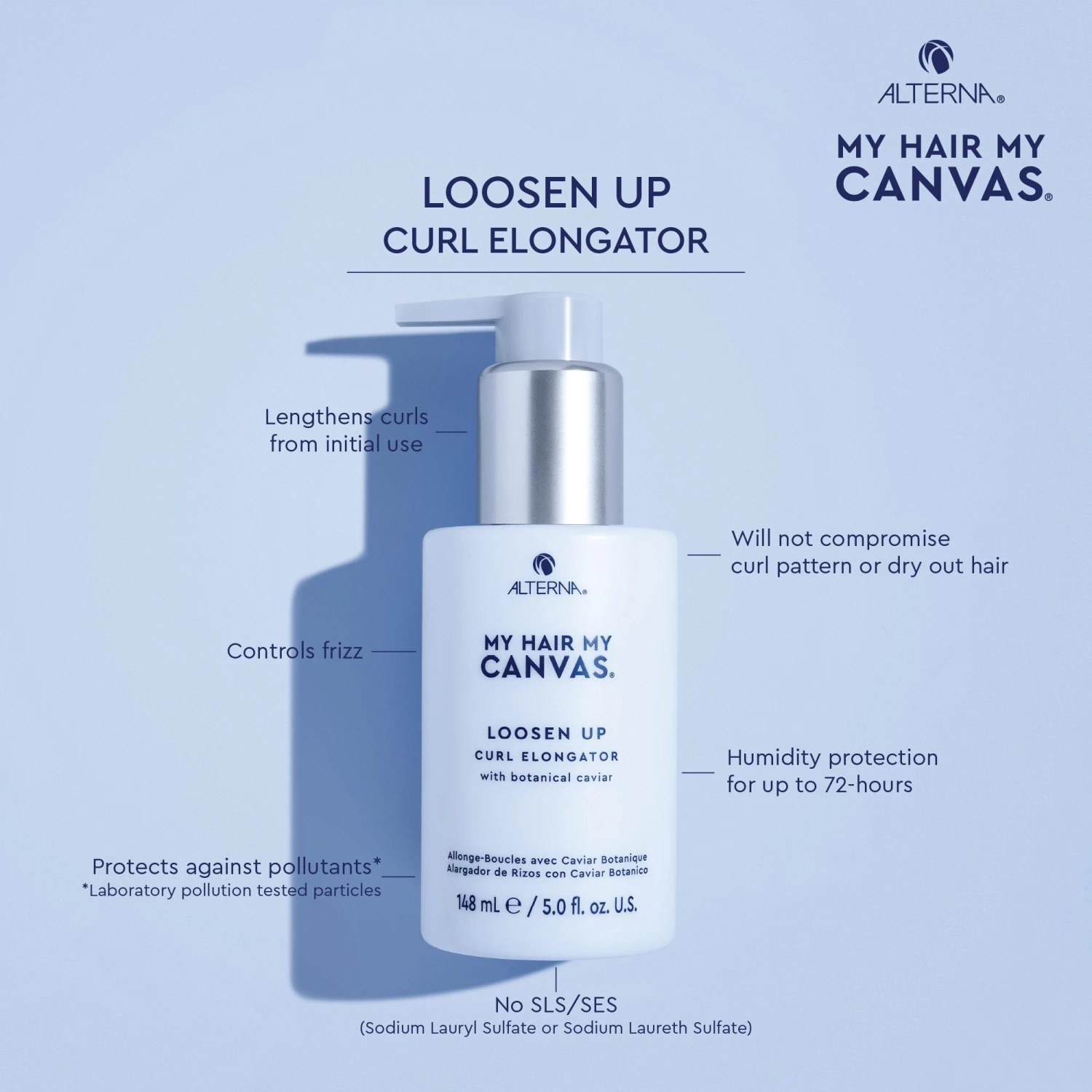 #### Benefits – Lengthens curls from initial use. – Will not compromise curl pattern or dry out hair. – Controls frizz. – Humidity protection for up to 72-hours. – Protects against pollutants. – Boosts shine. – *Laboratory pollution tested particles.