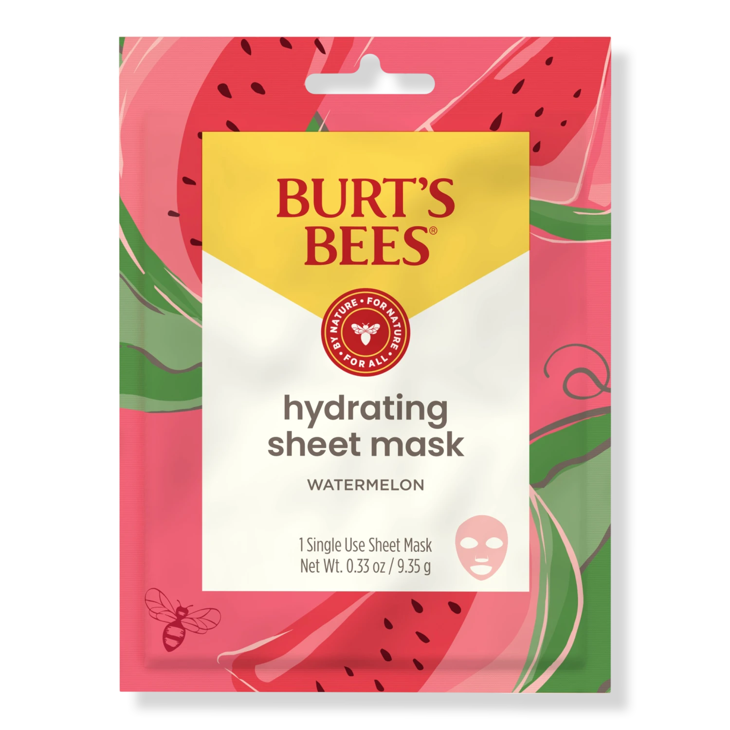 #### Benefits – SINGLE USE SHEET MASK: Use Burt’s Bees hydrating bio cellulose gel sheet mask with watermelon extract to gently moisture the complexion leaving your skin’s surface visibly radiant and glowing; package may vary – NATURAL INGREDIENTS: Burt’s Bees hydrating sheet mask is formulated with watermelon extract as it moisturizes and refreshes skin with the natural power nutrient-rich botanicals – HYDRATING BENEFITS: With Burt’s Bees hydrating sheet mask, help balance the pH in your skin while providing the necessary moisture for your complexion – EASY APPLICATION: With Burt’s Bees hydrating watermelon sheet mask, gently apply the mask to a clean dry face, remove after 5 minutes and massage the natural excess into skin, no rinsing required – ABSENCE OF NEGATIVES: Formulated without parabens, phthalates, SLS or petrolatum, Burt’s Bees brightening sheet mask is shown to naturally hydrate and nurture skin leaving your face feeling nourished