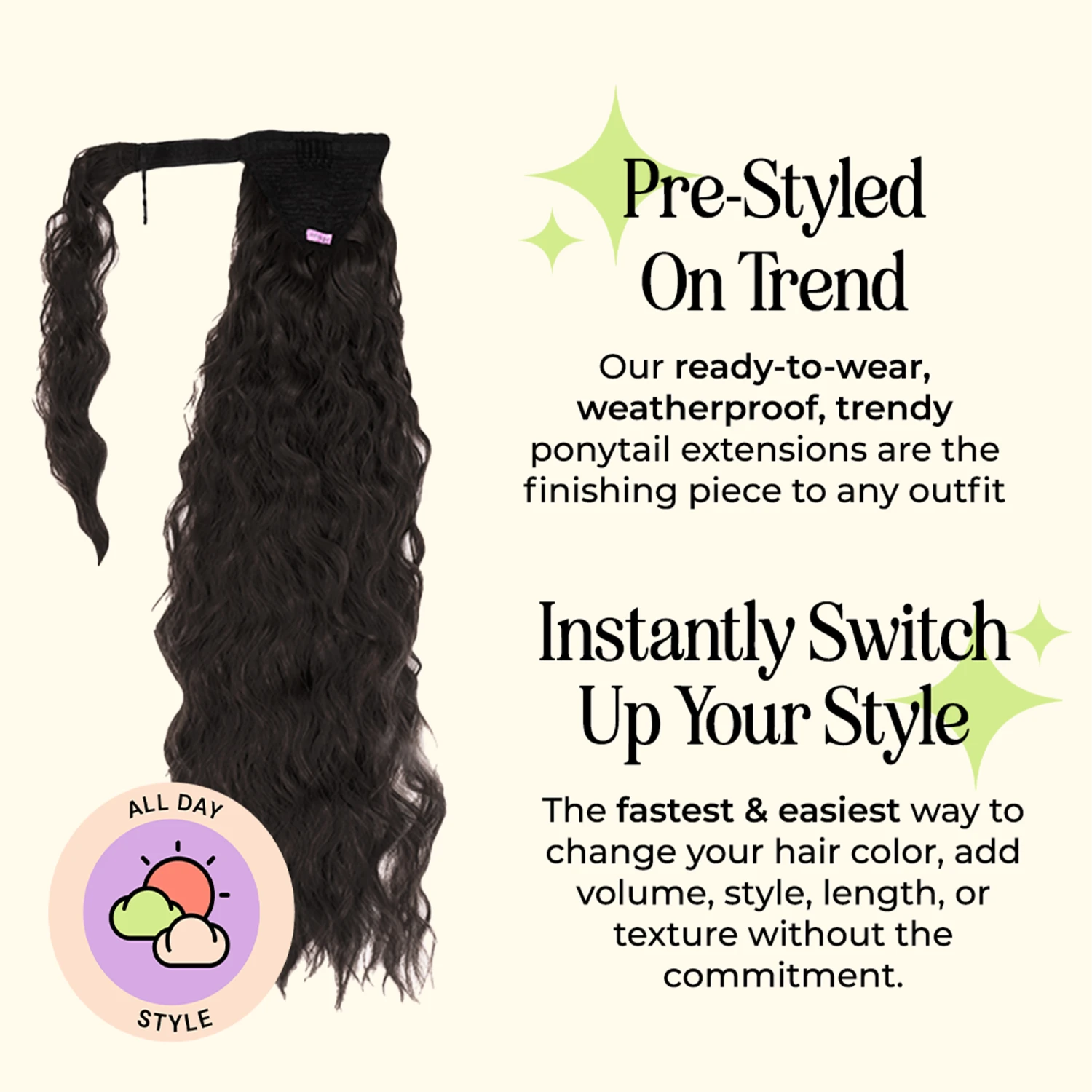 #### Benefits – Hair that looks & feels like it’s really yours – the INH team is dedicated to making soft & high-quality hair that looks and feels like your own. – Ready to wear – These pre-styled, weatherproof ponytails are the easiest way to switch up your hair color, style, length or texture without the commitment or harmful chemical & heat damage. – Instant Length & Volume – Ponytails are super versatile for endless days of hair bliss. Express yourself by effortlessly styling them in a variety of ways for any occasion! – Time-Saver & Beginner friendly – No time or experience? This is a life changing hair hack for beginners & experts alike! It’s super-fast & easy to apply by yourself in less than 60 seconds from anywhere! – Confidence Booster – INH calls it pony power – in a poll of 112 diverse babes from around the world, 98% said their hair is a big part of their self-expression & reflection of their personality, 100% said their INSERT NAME HERE hair boosts their confidence. #### Features – Length: 26 inches – Weight: 175 grams – Style: Extra long with loose spiral waves