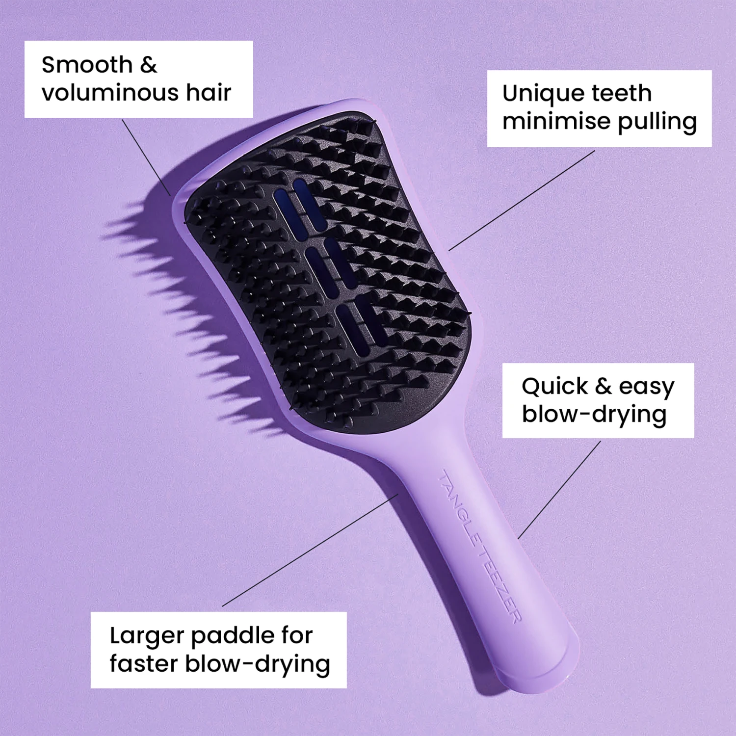 #### Benefits – Patented teeth technology and unique configuration quickly dries the hair, reduces pulling and delivers a healthier blow dry at home – Speed up blow drying and it’s easy to use – Reduces heat damage – Hair is smooth and shiny #### Features – Innovative bottle-shaped teeth and configuration encourage water to be pressed out of the hair to help reduce heat needed to blow dry. You can create smooth and sleek styles that shine all day long. – The bottle shaped teeth See how the teeth combined them with our innovative vents helps turn up the volume whilst leaving you with a frizz-free salon-worthy style – and the larger pad means that long hair gets all the attention it deserves – with no sacrifice on speed.